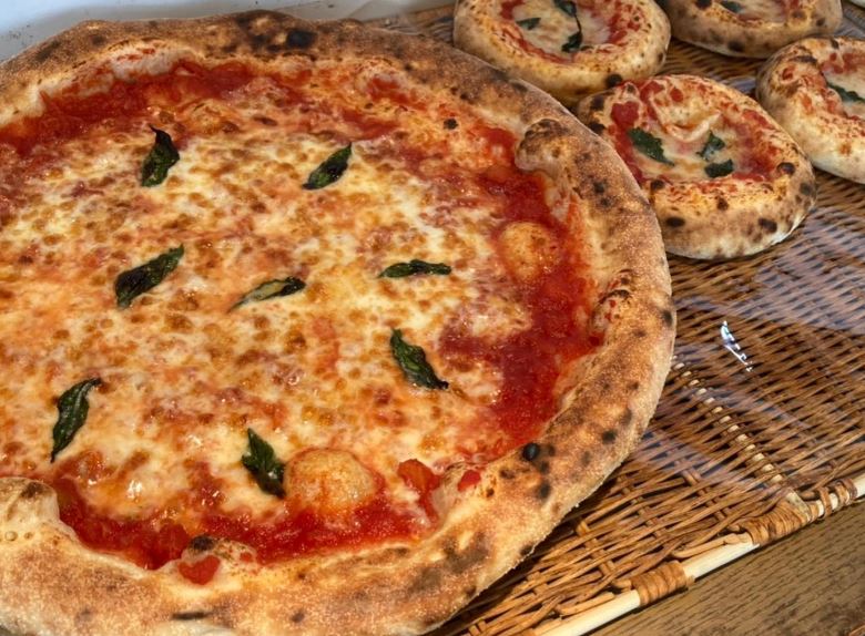 ピザ生地の材料は、「小麦粉」「水」「酵母」「塩」の4つのみ。 シンプルな材料で、作っています。 極力、国産、県産の原材料を使うようにしております。