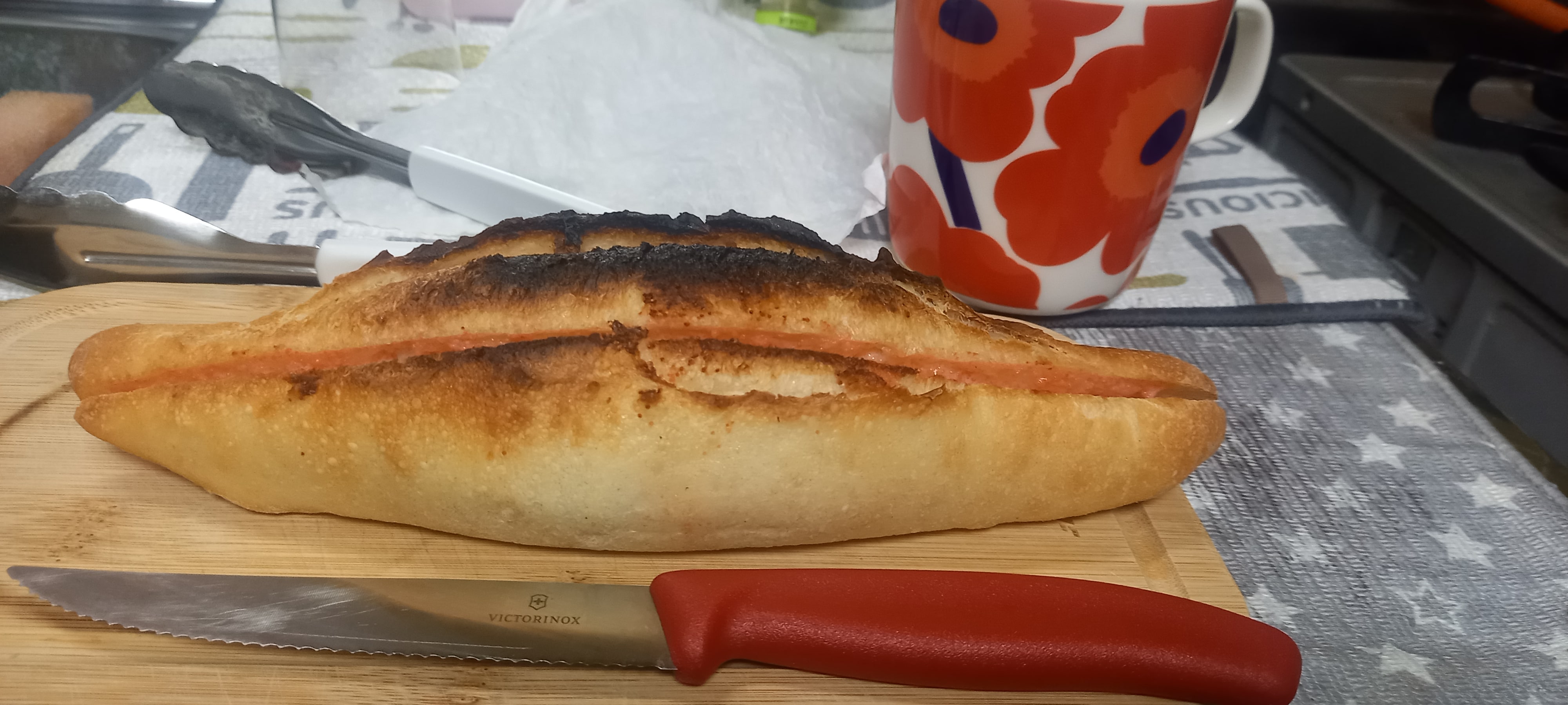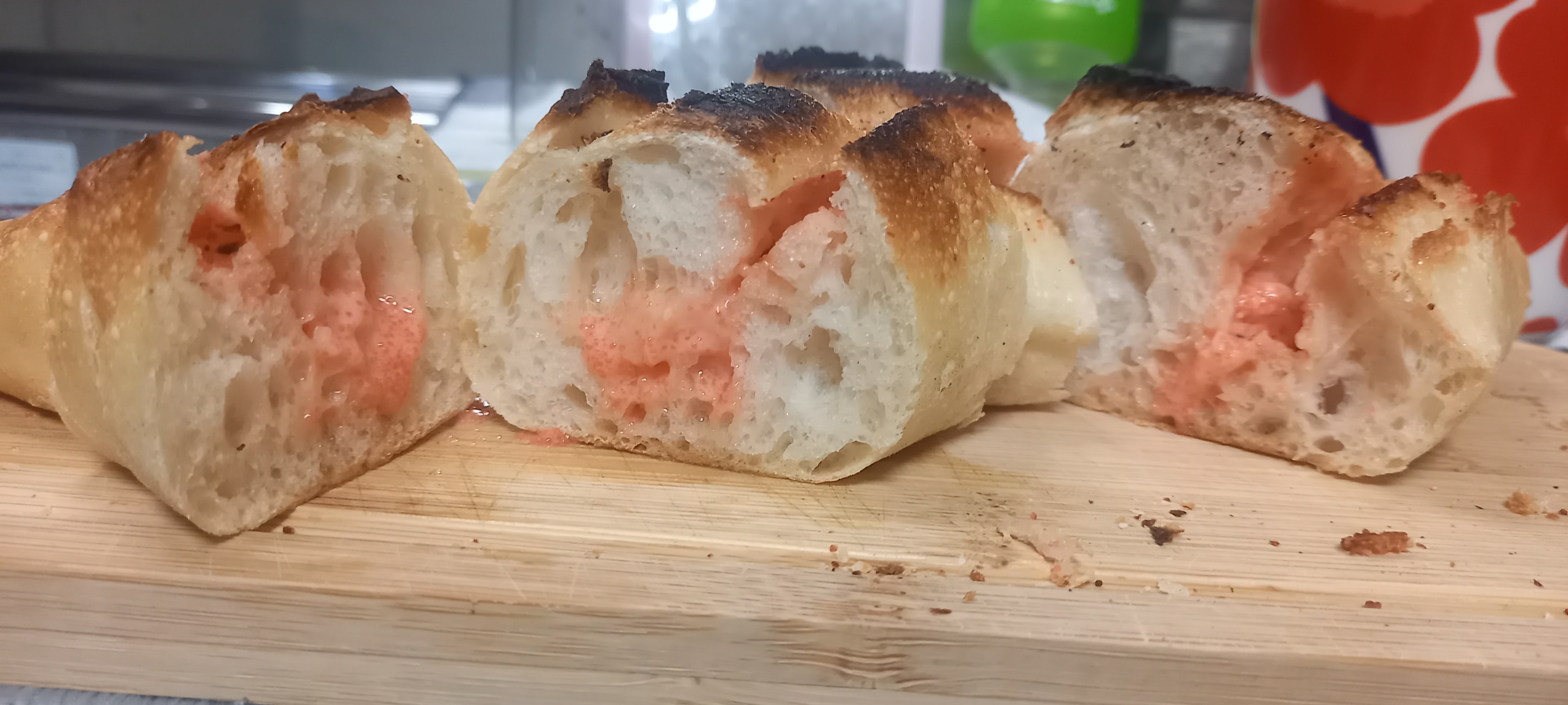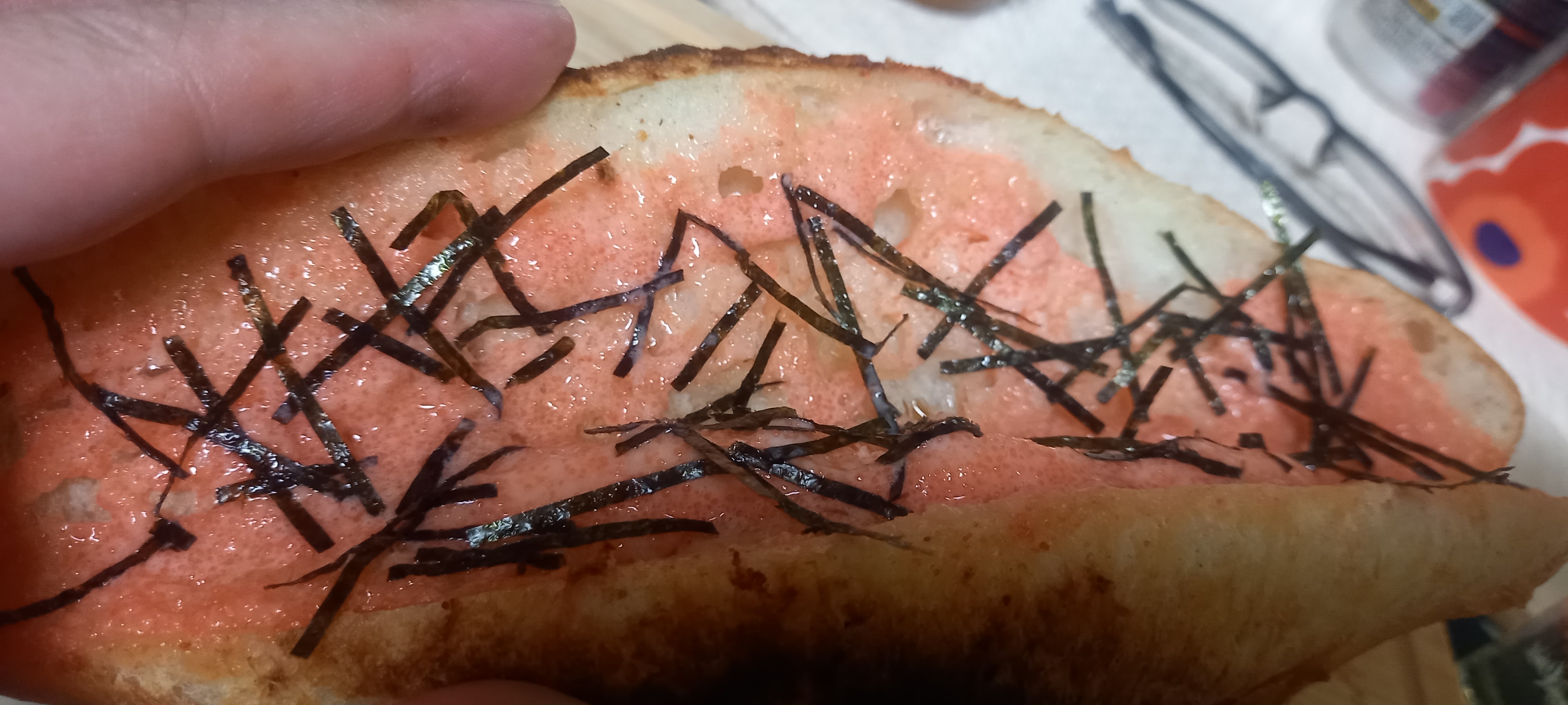 2025.10.0710月3日到着。ぎっしり詰まった「明太子フランス」。 早速食しました。外はパリっと中はしっとりで明太子フィリングにとてもマッチした生地。中のフィリングも端から端までぎっしりで食べ応え有りましたね。 おすそ分けもしながら3日間で美味しくいただきました。 刻み海苔を散らして食べるのもお奨めです(^^) 有難うございました。もっと見る -