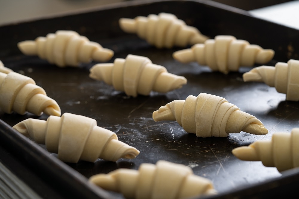 毎日の食事とともにあるパンだからこそ、安心安全をモットーに添加物をできる限り使わず、手づくり・製法にこだわっています。 職人が仕込みから焼きあげまで手間ひまかけて作る「スクラッチベーカリー」という製法で、1日に100回以上の「焼きたて」「揚げたて」「つくりたて」のパンが店頭に並びます。 生地はもちろん、惣菜パンや菓子パンのフィリングやソースも手づくりが基本。 おいしさの中に優しさを感じるダンマルシェの味は、こうして生まれているのです。