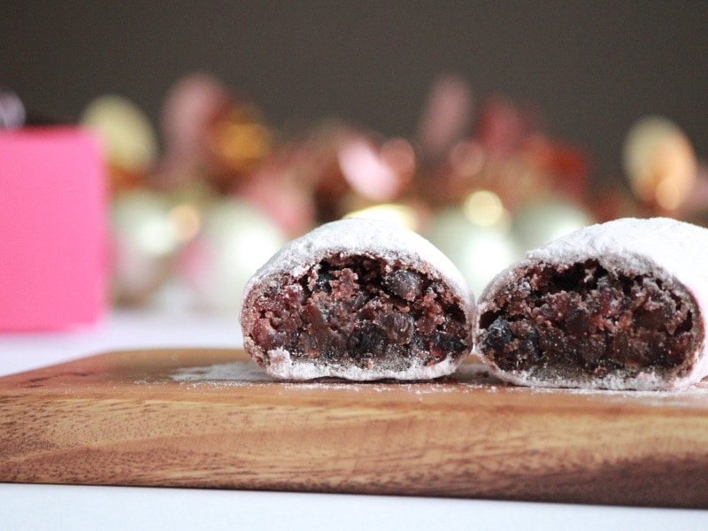 外側には粉糖がまぶされていて、クリスマスらしい見た目もテンションが上がるポイントです♪
